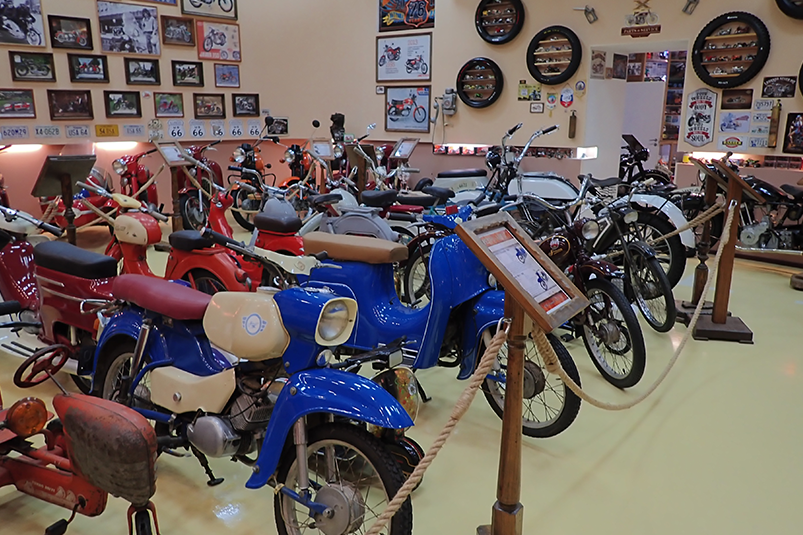 Павильоны. Павильонов здесь три — один с автомобилями и два с мотоциклами. В автомобильном представлены машины зари автопроизводства и «корабли» золотой автоэпохи США (50-60 годы). Мотоциклов больше, поэтому они разделены на два зала.
